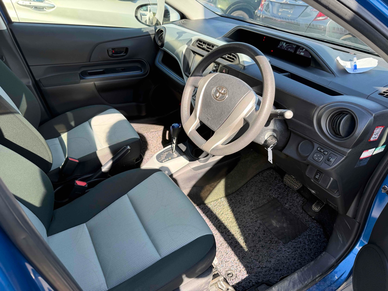 Experience the 2014 Toyota Aqua Hybrid, a stylish and efficient blue car perfect for the eco-conscious driver. This car offers smooth and easy drives with its automatic transmission and front-wheel drive system. Stay comfortable with features like an air conditioner and power windows. Safety is a top priority with airbags, anti-lock brakes, and a traction control system. Feel secure with an anti-theft system and enjoy clear views through UV and toned glass. With only 34,000 miles, this compact car is almost as good as new. The Toyota Aqua Hybrid is both practical and reliable, making it an ideal choice for those who want to drive green without sacrificing comfort and safety.