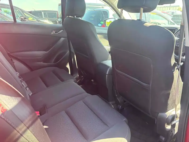 The 2015 Mazda CX-5 in vibrant red is a stylish and efficient ride. With a 2WD petrol engine and automatic transmission, it provides a smooth driving experience. You'll enjoy the comfort of power windows and seatbelts for every passenger. Stay safe with features like a reverse camera and 6 airbags. The stability control ensures a controlled drive, while the UV filter glass keeps you cool and protected in sunny weather. This vehicle also includes alloy wheels, a factory stereo for entertainment, and a sleek black trim. With 92,000 miles driven, it's in great condition for your next adventure. Experience this reliable and fun car today!