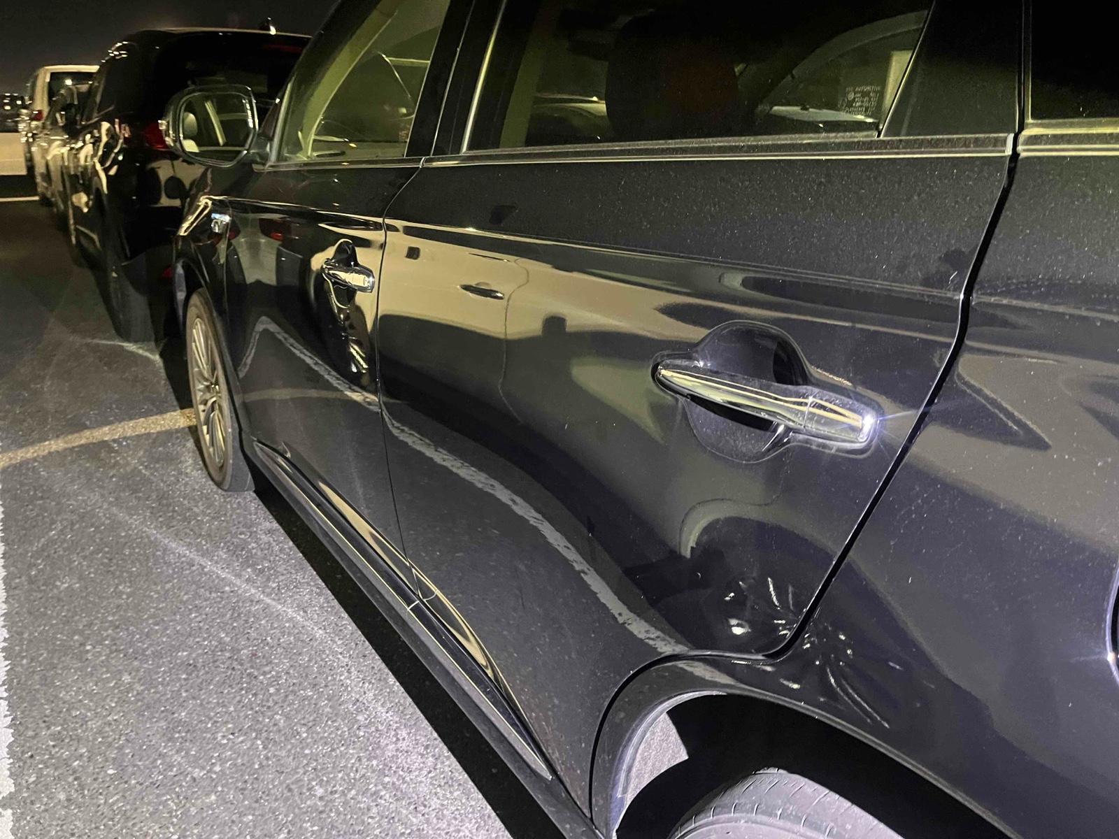 Discover the 2018 Mitsubishi Outlander in sleek black. This petrol-powered SUV combines style and performance with its 4WD and automatic transmission. Drive confidently with safety features like airbags and an anti-lock braking system. Experience great comfort with power windows, a leather steering wheel, and electric seats. The air conditioner keeps you cool, while cruise control makes long drives enjoyable. The SUV also has child seat anchors for family travel and tinted windows for privacy. Stay secure with features like a rear wiper and anti-theft system. Enjoy the modern design, practicality, and spacious interior of this reliable vehicle. Perfect for family trips or daily commutes.